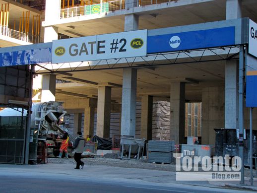 February 6 2012: A view into the tower’s main floor. According to a project fact sheet on the Mars Centre Phase 2 website, an atrium will link the building to the other MaRS properties next door along College Street. The atrium will feature a 62-foot-high glazed skylight, metal mesh and terracotta walls, and stone floors.