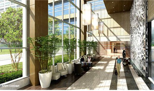 This illustration, from the Aura website, shows part of the condo lobby that will overlook the Barbara Ann Scott rink and green space in the College Park courtyard