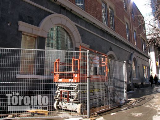 February 13 2012: Part of the Bay Street sidewalk is still fenced off while work is finished on the facade