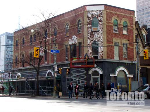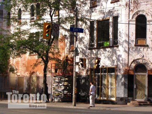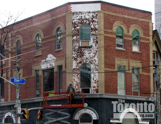 But the southwest corner has been drawing plenty of looks, too, since a small brick hotel building that many people expected to be torn down has been getting a total renovation both inside and out, rather than being replaced with a condo highrise. It’s 650 Bay Street, whose former occupant, the Bay Street Motel, gained notoriety after placing 2nd on TripAdvisor.com’s 2010 listing of the 10 Dirtiest Hotels in Canada. (The hotel closed its doors in late 2009, shortly before the infamous list was published.)
