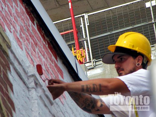 … but the painting crew makes fast progress applying faux finish to the bricks