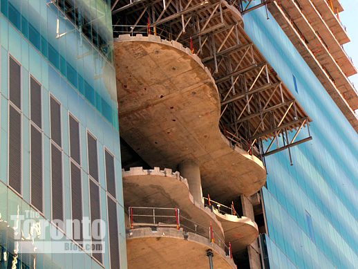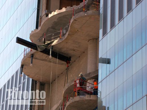 February 13 2012: A zoom view of the sweeping curves on some of the atrium floorplates that jut from the tower’s east wall
