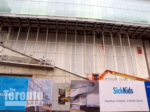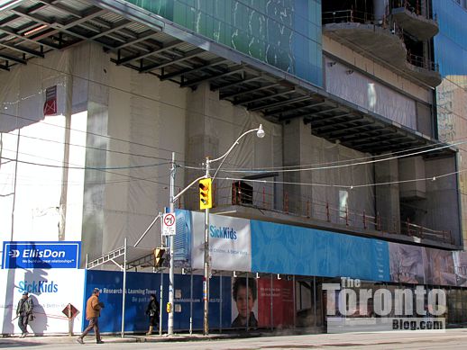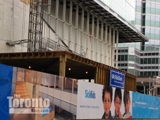 January 29 2012: SickKids Tower billboards on hoarding along Elm Street