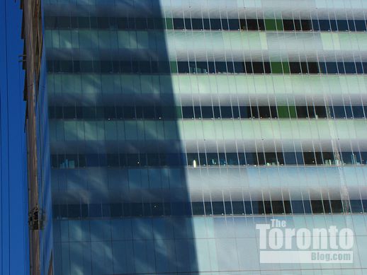 February 6 2012: Turquoise-tinted cladding on the tower’s northwest corner