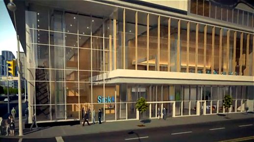 … depicted in this SickKids video image showing the tower base along Bay Street