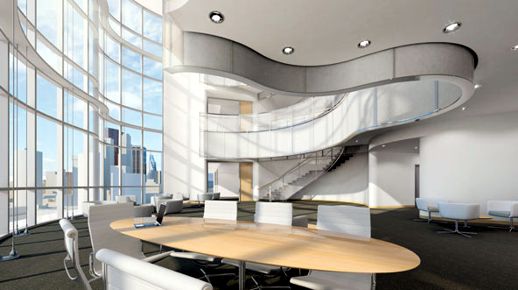 January 29 2012: The glass wall will wrap around the southeast corner and extend partway up the east side of the building …