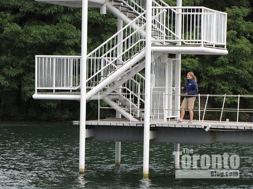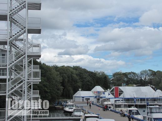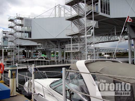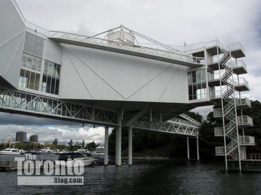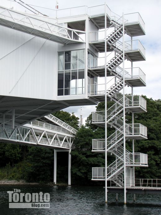 A pavilion staircase overlooking the Ontario Place marina