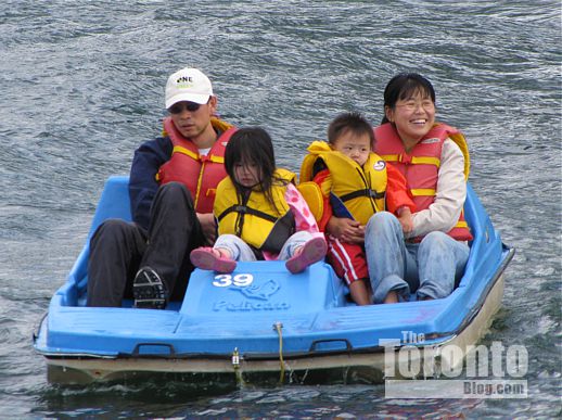 A family enjoys a paddleboat at Ontario Place …