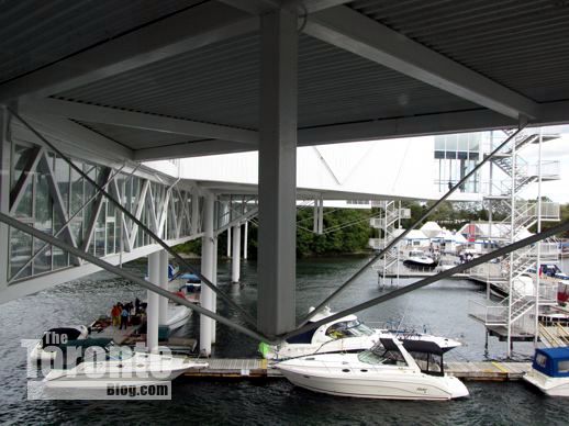 Boats under a pavilion at Ontario Place