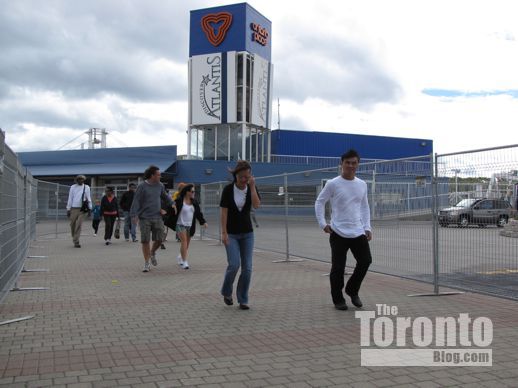 People walk from the Ontario Place entrance toward the CNE grounds at Exhibition Place. The park entrance gates always looked cheap and tacky; it never felt like an event to enter the grounds through the turnstiles at the dingy gate.
