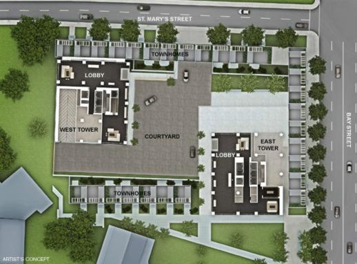 This illustration of the U Condos site plan appears on the project website. The extensive landscaping for the development is being designed by Patrick Bollenberghe and The MBTW Group.