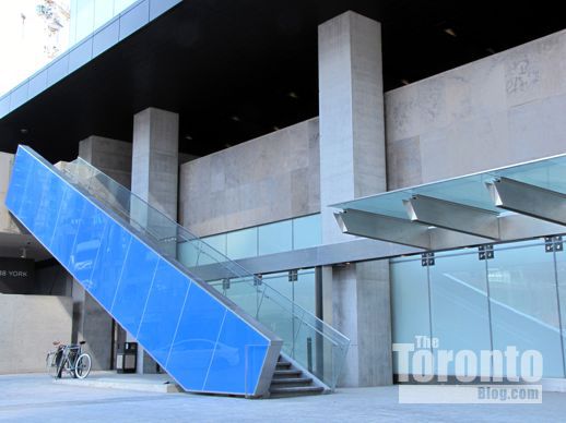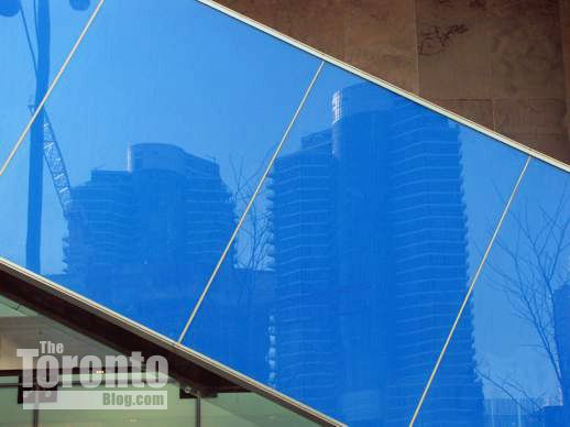 February 20 2012: The shiny blue staircase cladding reflects two of the three Waterclub condo towers on Queen’s Quay Boulevard at nearby Harbourfront