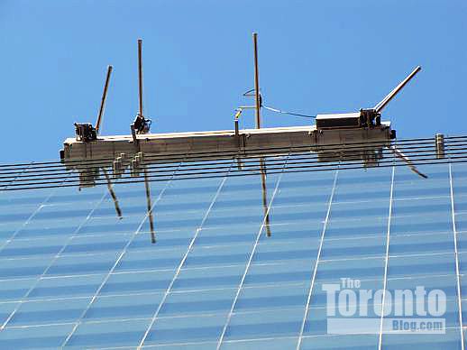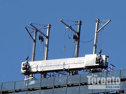 February 20 2012: Another view of the swing stage that workers will use to install the PwC logo on the face of the tower