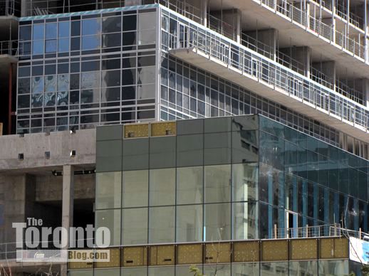 March 6 2012: Glass cladding on some of the lower tower floors above the podium