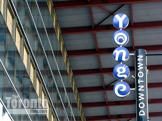 March 6 2012: A Downtown Yonge BIA street sign beneath the canopy