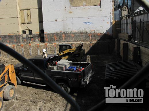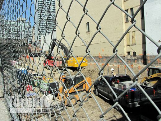 Overlooking the excavation through a chainlink fence at the southwest corner of the site, next to the Royal Alexandra Theatre