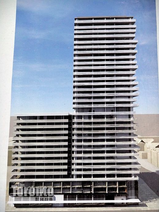 An online listing by Metropolitan Commercial Realty Inc. said the asking price for the 38,000-square-foot building was $11,750,000. Cresford eventually acquired that property and decided to build a condominium on the combined three sites it owned, rather than the condo-hotel project originally planned for 1000 Bay. It submitted a new rezoning application on November 30 2011, and city planners identified numerous issues and concerns with the proposal in a December 11 2011 preliminary report. Toronto and East York Community Council subsequently directed the planners to hold a community consultation to get public feedback about the condo plan, and that meeting took place on February 15 2012.