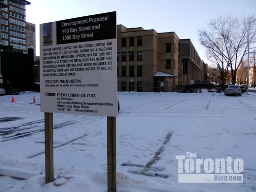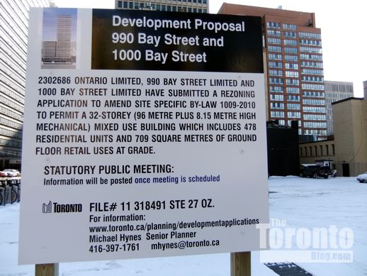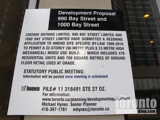 January 9 2012: A development proposal sign posted at 984 Bay Street
