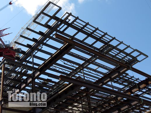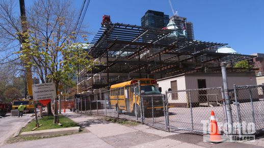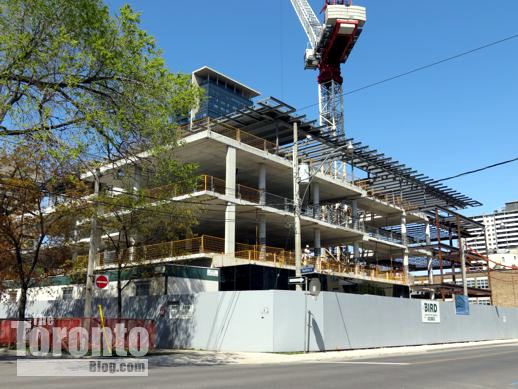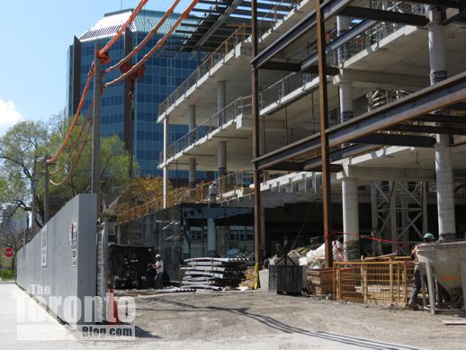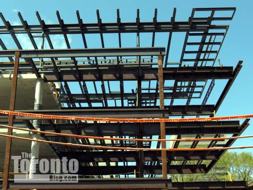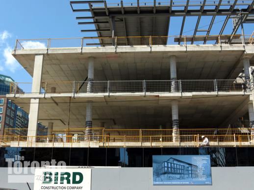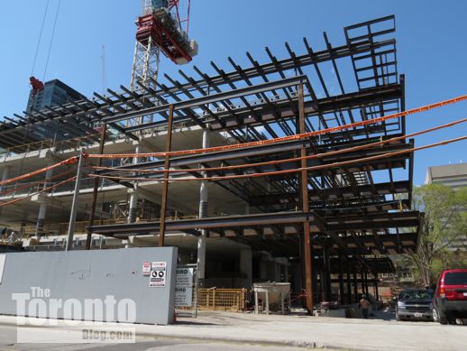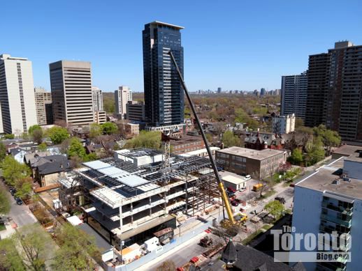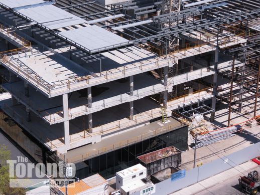 April 29 2012: A view, from a nearby apartment building, of the construction progress on the southeast corner of the ETFO headquarters