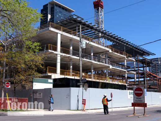 April 29 2012: Isabella Street was closed between Sherbourne and Huntley Streets this weekend while the construction crane was taken down from the ETFO site
