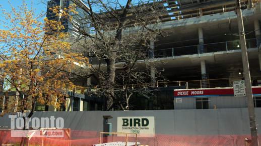 Even though the building is still a year from completion, neighbourhood residents have already been commenting favourably on the ETFO offices. At a meeting of the Upper Jarvis Neighbourhood Association last December, a number of residents spoke up to praise the building design and say they thought the ETFO headquarters would fit well within the community, a long-established enclave characterized by a mix of houses, low- and highrise apartment buildings and condos, offices, schools, a hotel and a hospice. Several area residents told me they were particularly pleased that KPMB Architects designed the west side of the building along Huntley Street to accommodate a large black walnut tree, and incorporated green roof elements into the structure.