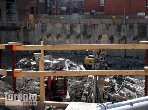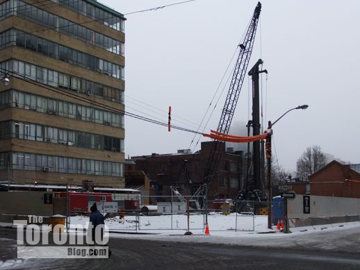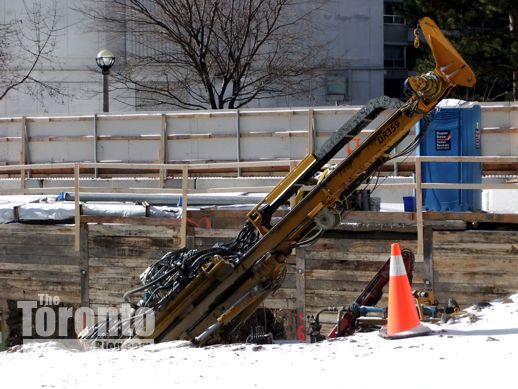 January 21 2012: Foundation drilling equipment along the west (Yonge Street) side