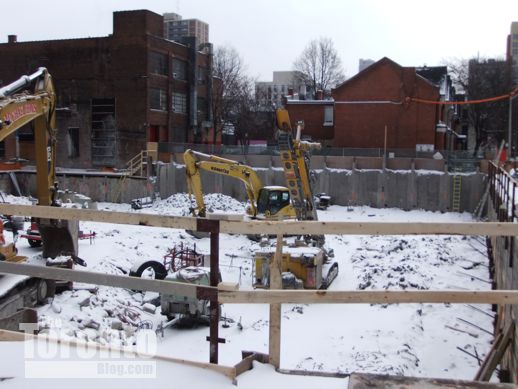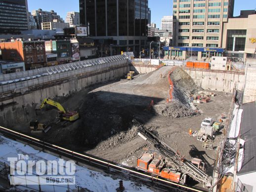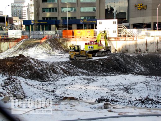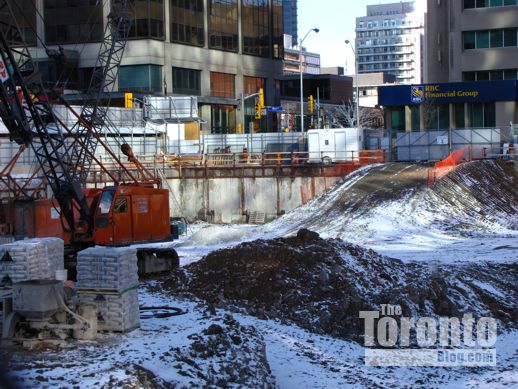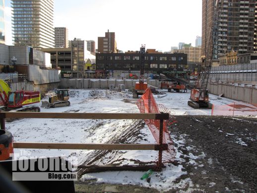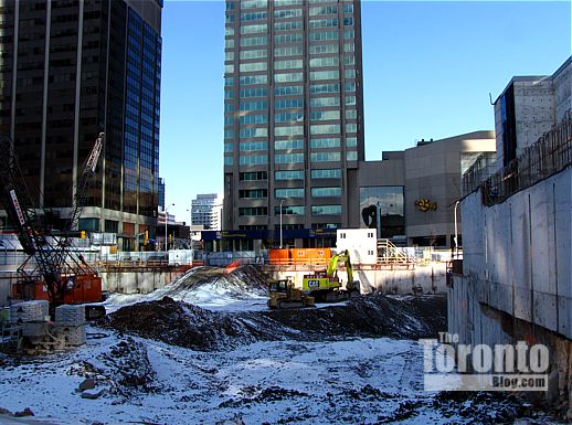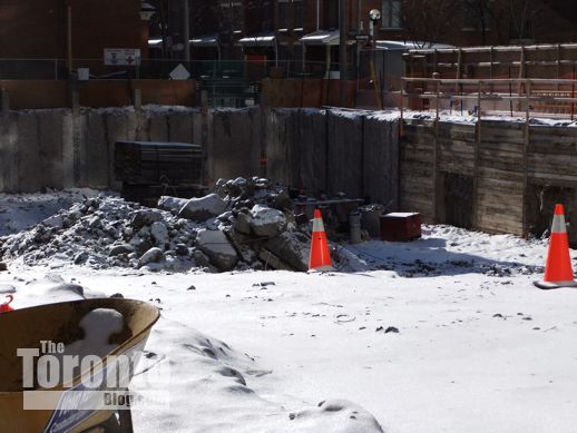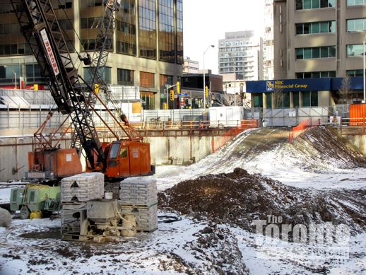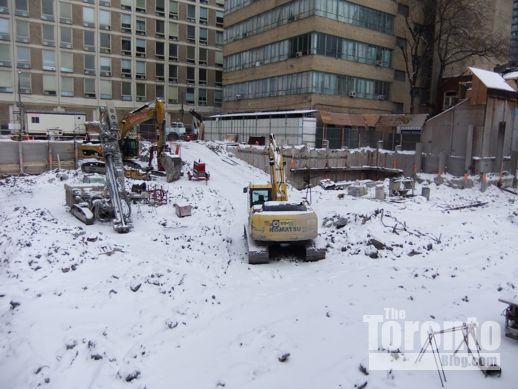 January 21 2012: Looking south from Bloor Street across the snow-dusted One Bloor excavation, which has reached 2- to 3-meters deep in areas