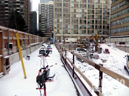January 21 2012: Looking from Hayden Street toward the northwest corner of the site near the Yonge & Bloor intersection