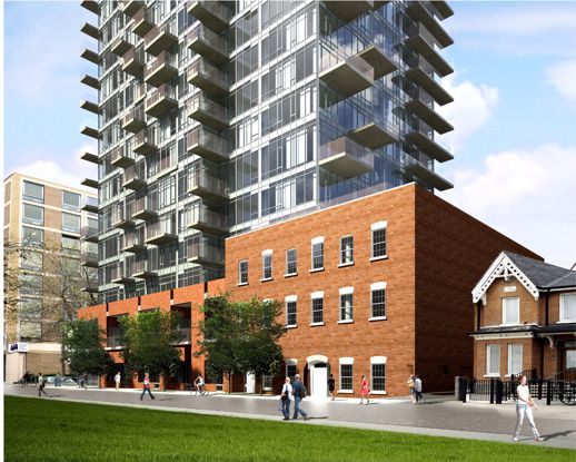 … while this rendering, also provided courtesy of Core Architects, depicts a southwest view of the tower and reconstructed mill building on St Nicholas Street