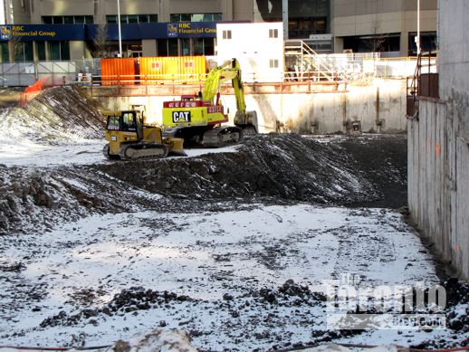 February 12 2012: Excavation has reached more than one level below grade along parts of the site’s east, south and west sides