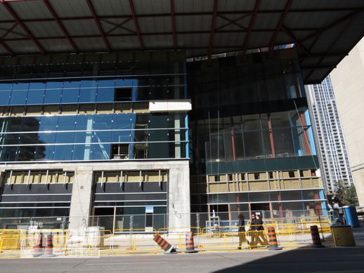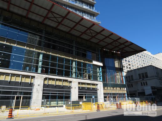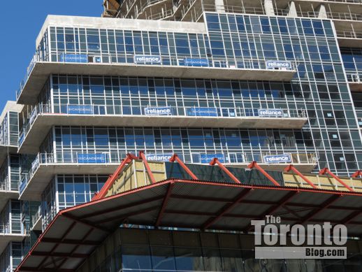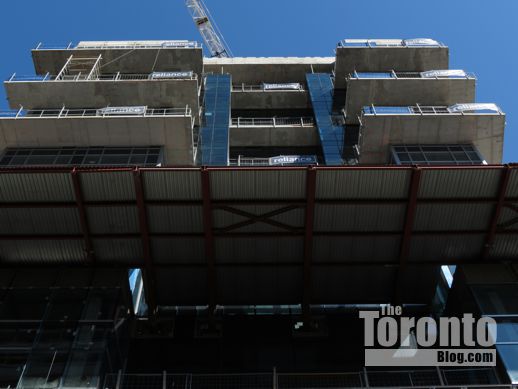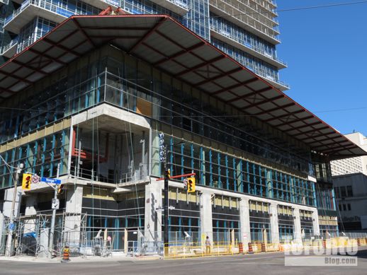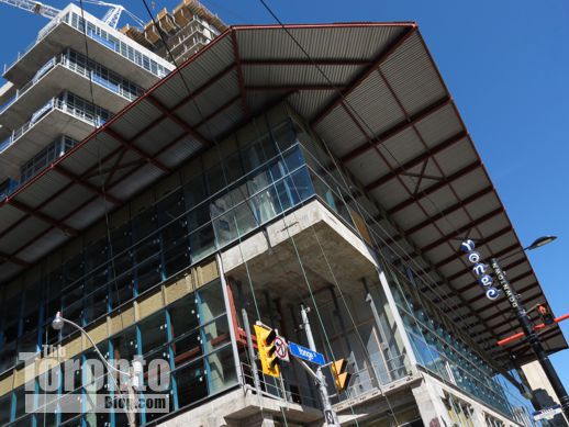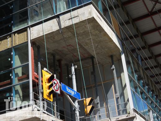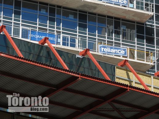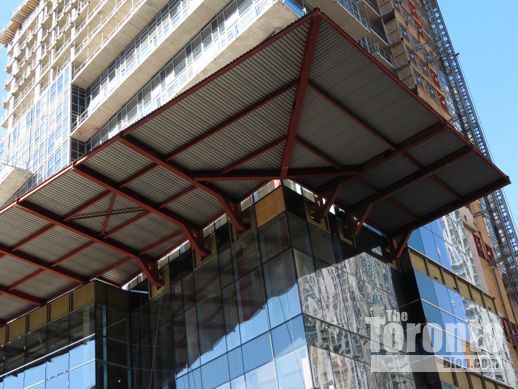 April 29 2012: A closer view of the wide safety canopy above the Yonge sidewalk