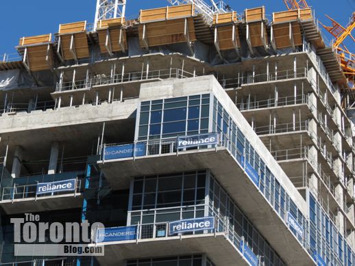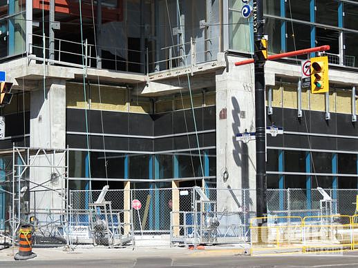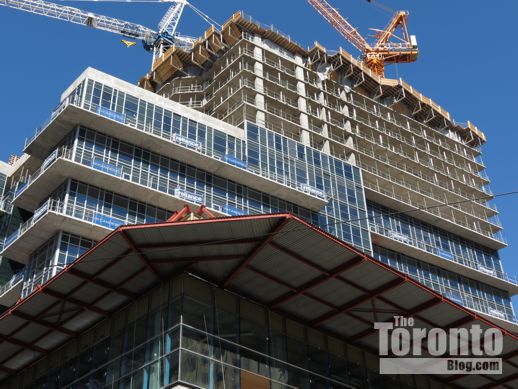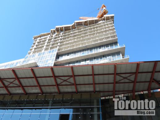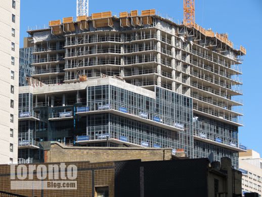 April 29 2012: A view of Aura’s tower construction from Gould Street at the Ryerson University campus to the southeast