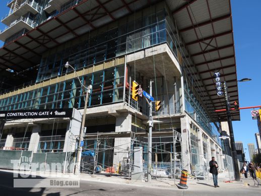 April 29 2012: A view of the podium’s northeast corner from the east side of Yonge