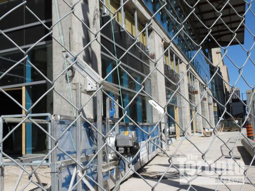 April 29 2012: Ground level chain link fencing now keeps pedestrians away from the construction areas
