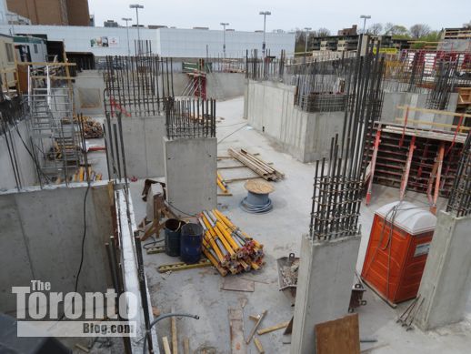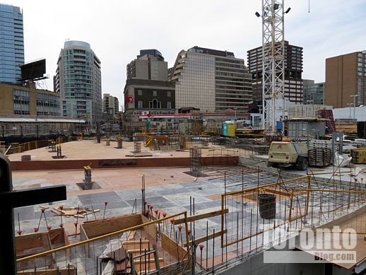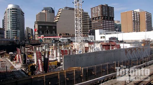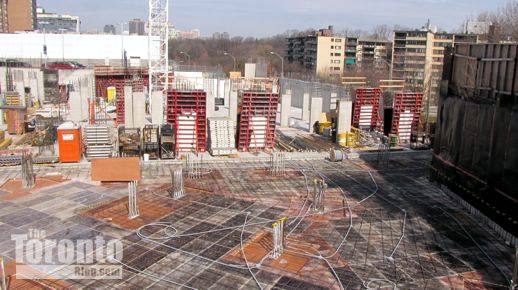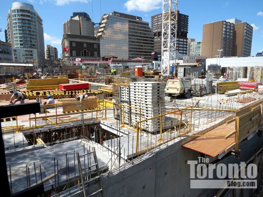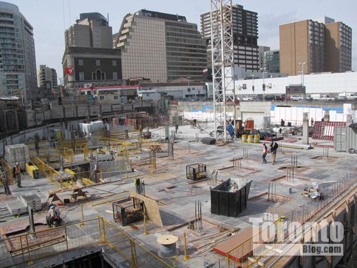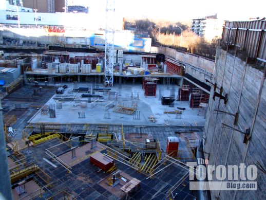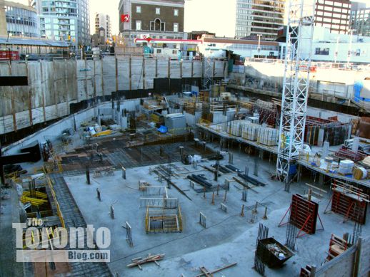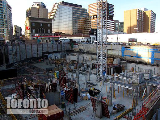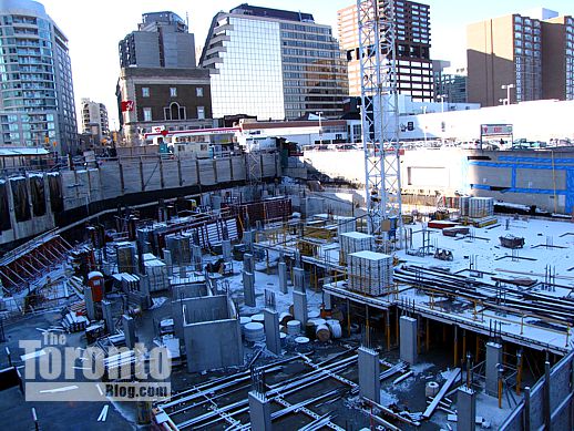 January 21 2012: Construction of the underground levels gradually works its way from the north, below the Canadian Tire store, to the south, along Church Street