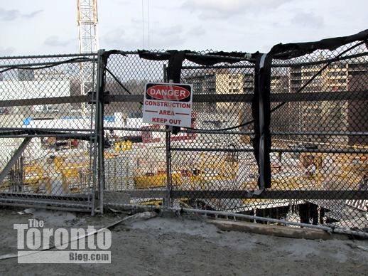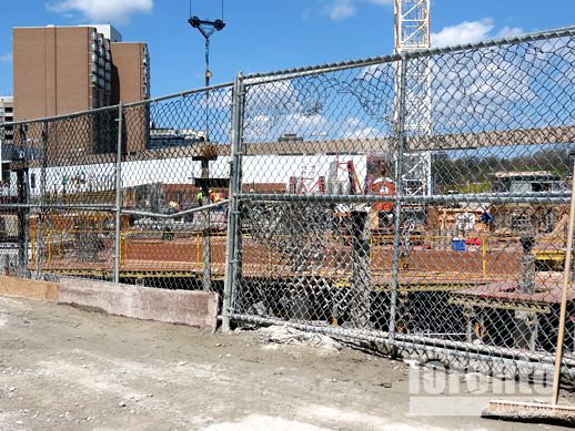 March 2 2012: Construction viewed through a double chain link fence next to the Church Street sidewalk