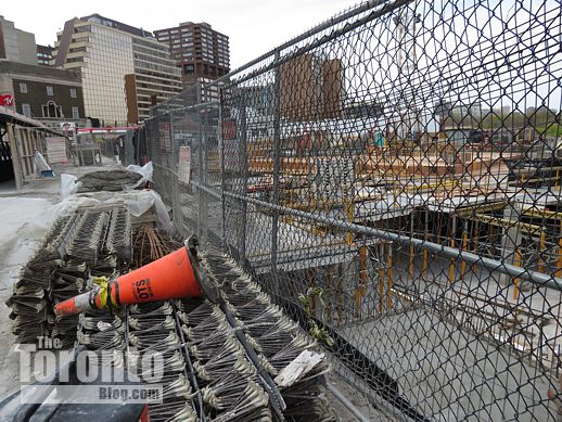 … the construction appears to have reached street level, as suggested by its proximity to the hoarding along the Church Street sidewalk (left)
