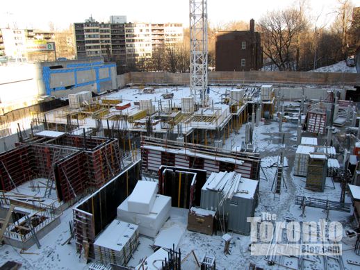 December 11 2011:The tower’s underground parking levels continue to take shape in this view from the northeast side of the property