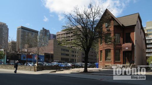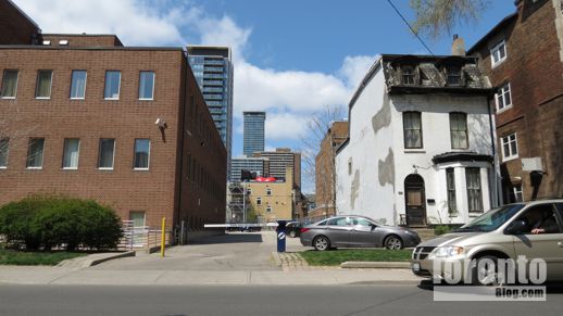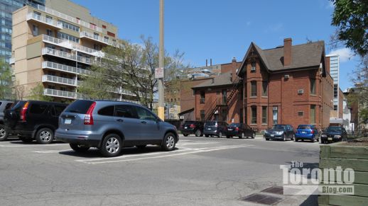 April 27 2012: Looking to the northeast across the parking lot. At right is the 20 Maitland Street mansion that is one of the properties being marketed for redevelopment