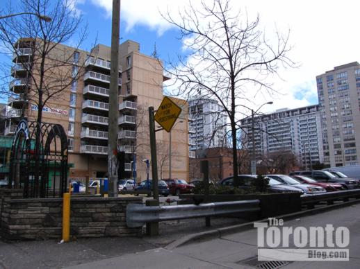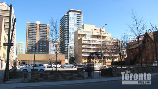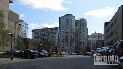 April 27 2012: The Cosmopolitan condo highrise at 25 Maitland is directly across the street from the south side of the Wellesley Development Lands