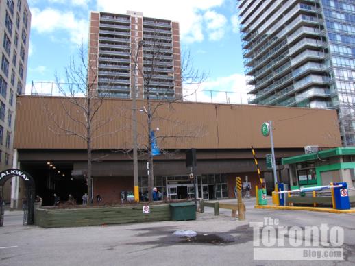 April 5 2011: Looking toward the Wellesley subway station from inside the entrance to the municipal parking lot
