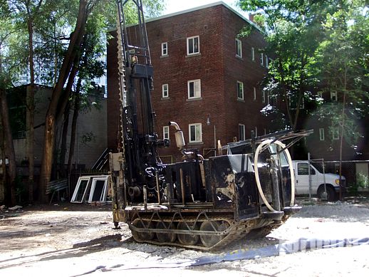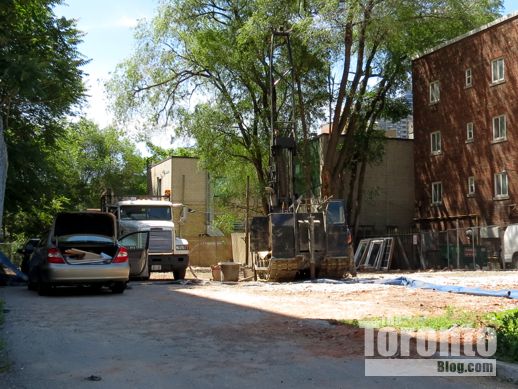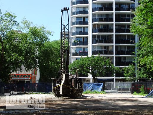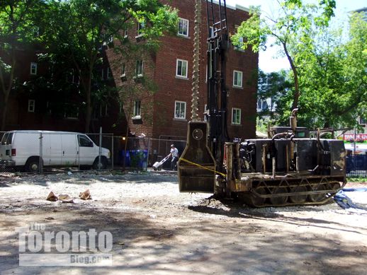 June 13 2012: A worker stands next to a drilling machine on the former coach house site at the south end of 81 Wellesley Street East