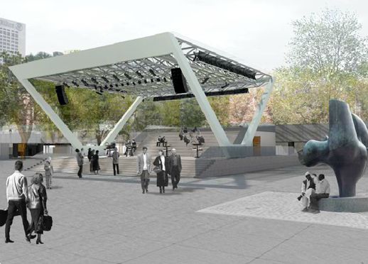 This illustration, from the Nathan Phillips Square Revitalization project page of the City of Toronto website, shows how the new theatre stage will look when complete