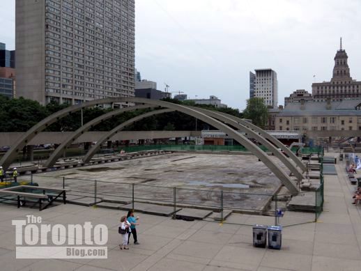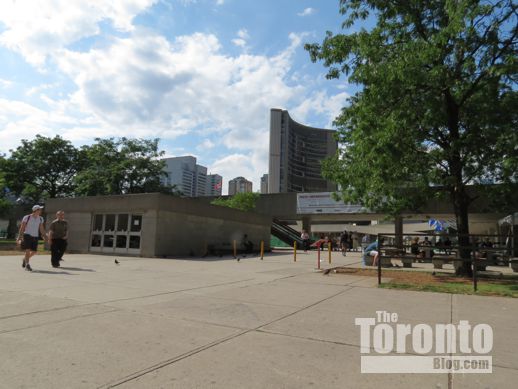 July 27 2012: The southeast corner of Nathan Phillips Square. Plans for a tourist kiosk may be dead, but this corner is still supposed to receive new landscaping.