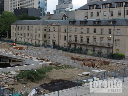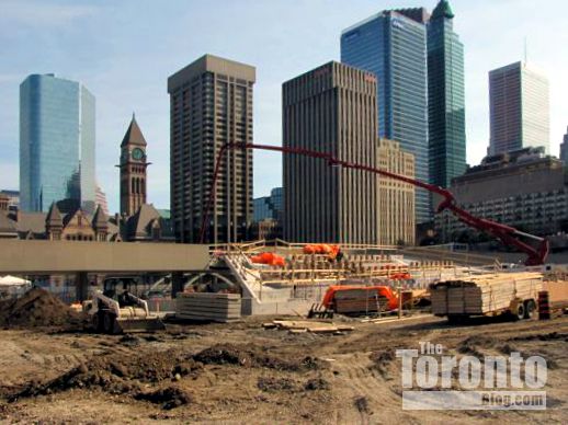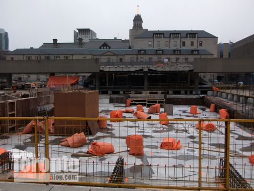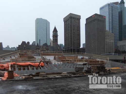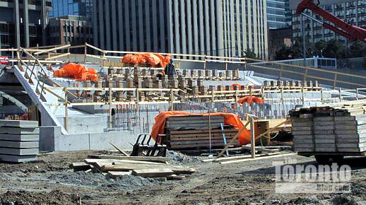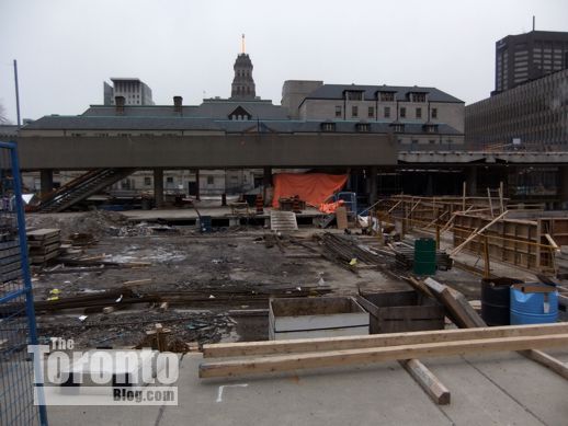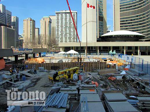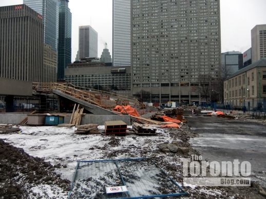 January 30 2012: Peace Garden construction work viewed looking east from the walkway between Nathan Phillips Square and Osgoode Hall