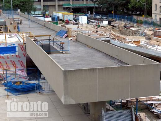 July 7 2012: Looking south along the elevated walkway along the Bay Street side of the square. Only the walkways on the west side are being upgraded and refurbished.