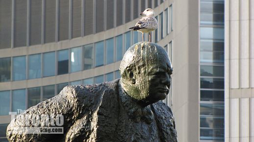 The statue of Sir Winston Churchill, which presently commands attention at the southwest corner of the square, just off Queen Street …