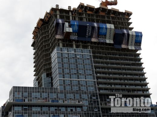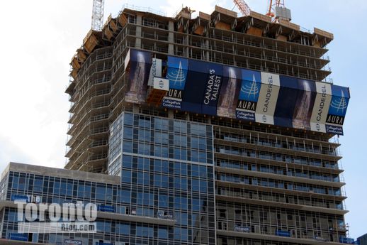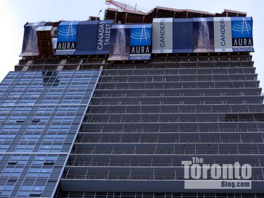 June 8 2012: The banners promote Aura as “Canada’s tallest” residential condominium