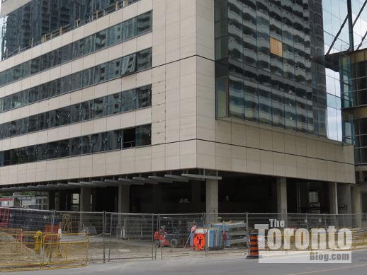 June 8 2012: Gerrard Street view of Aura’s podium along Yonge Street