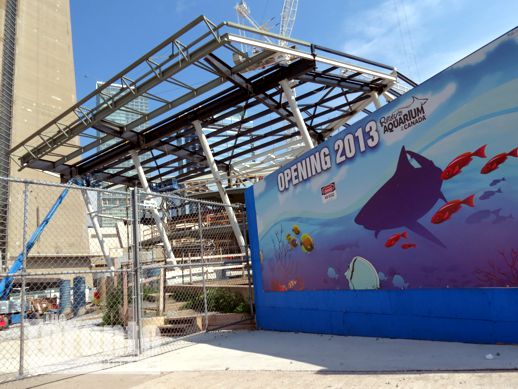 Last week I was amazed to learn that, less than a year after construction shovels had hit the ground, the aquarium had already begun hydro-testing its 750,000-gallon Shark Lagoon, filling the acrylic tanks with water to ensure there are no leaks. I had not seen the construction site since early May, at which time it looked like the building still had a long way to go, so I was surprised to hear that water testing was underway on the tanks that will become home to more than 13,500 fish and other sea creatures. (Also last week, the Toronto Star reported that marine biologists and shark experts started hunting for sand sharks for the aquarium back in April.)